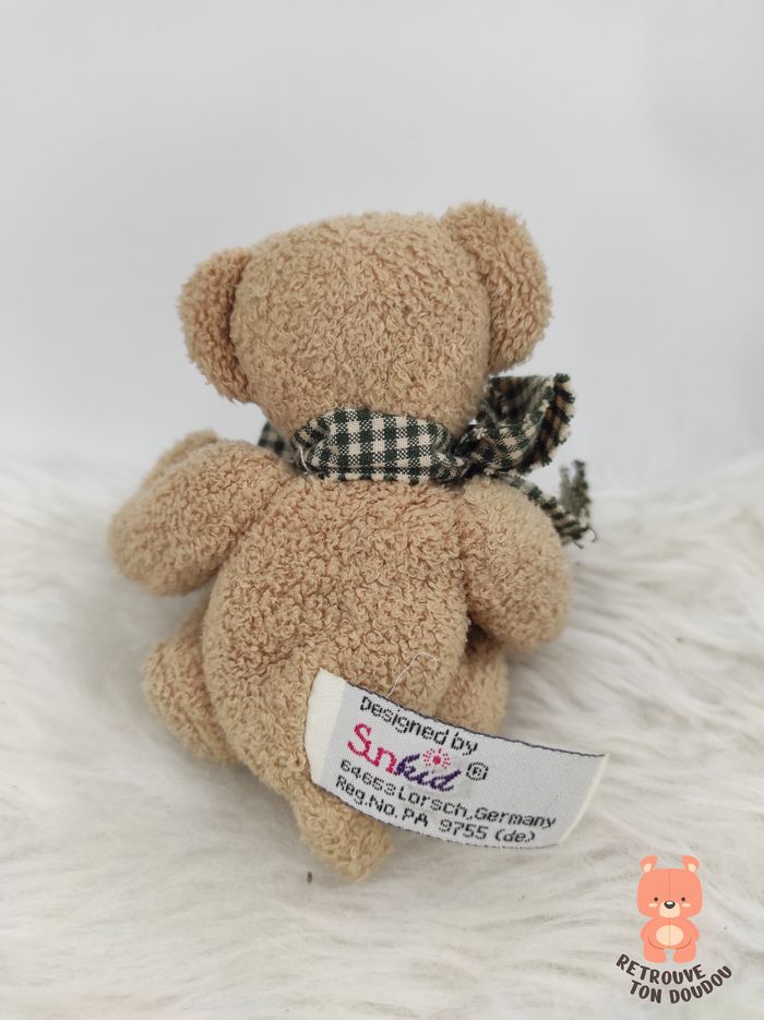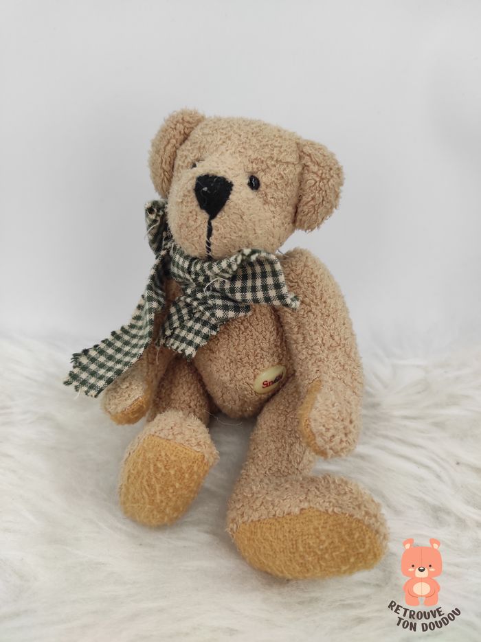 🧸 Petit Ours en Peluche beige avec ruban à carreaux verts Sunkid 📏 Dimension : 15 cm environ ✨ Occasion, très bon état 🧼 Passage vapeur 👀 Vous achetez le doudou que vous voyez sur les photos.