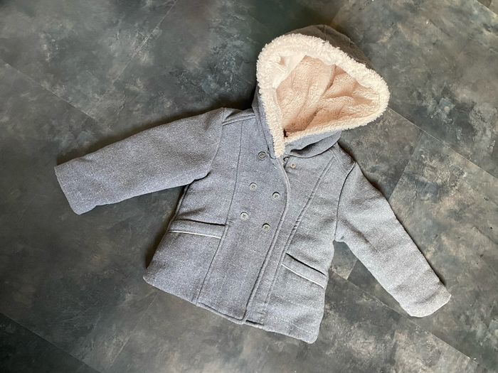 Manteau à capuche gris argenté doublé fourrure douce beige 3 ans Tape à l’œil