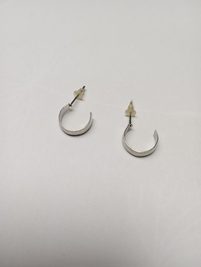 Petites créoles argentées. Diamètre : 1 cm. Très bon état.