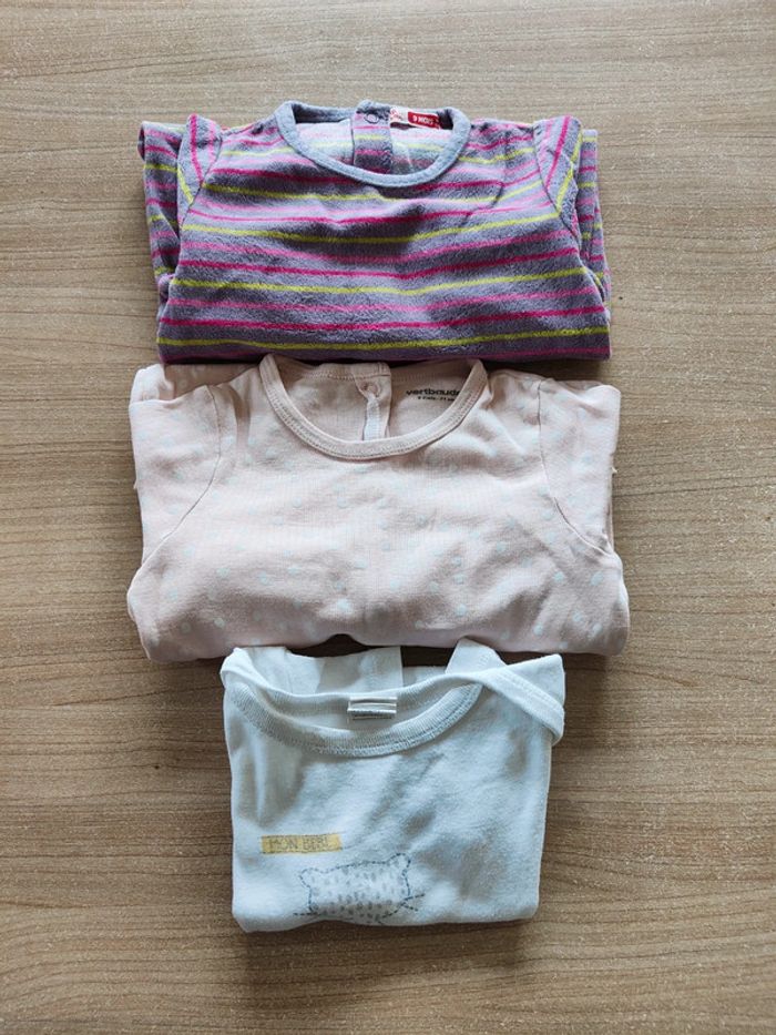 1 pyjama Verbaudet léger taille 9 mois en très bon état 1 pyjama Dpam un peu plus chaud taille 9 mois en bon état un peu plus porté 1 bodie en bon état taille 9 mois