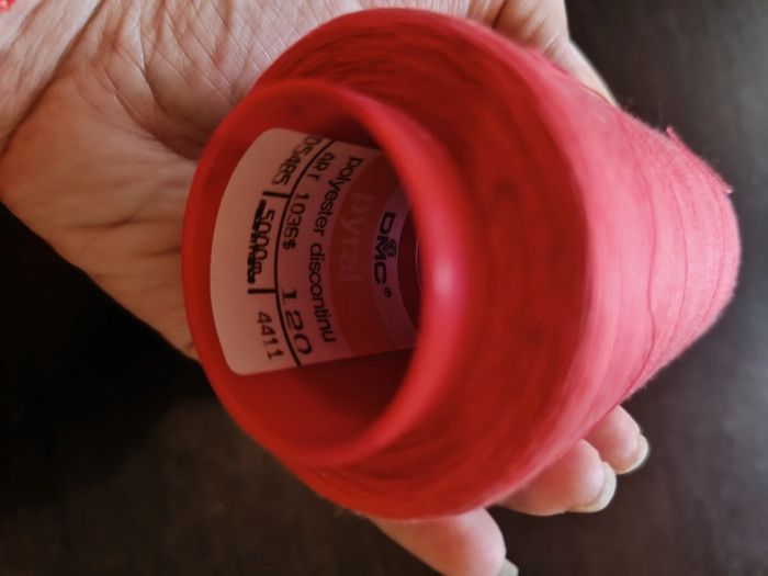 Grosse bobine industrielle de fil DMC Rouge corail TRES BON ETAT Allez voir mes autres ventes!