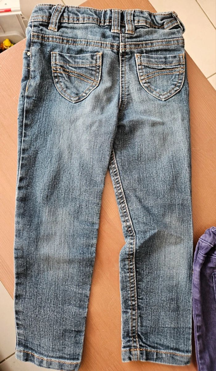 Lot de deux jeans taille 3 ans. Le violet de la marque Palomino. Taille 104cm mais je trouve qu'il taille petit donc je préfère mettre 3 ans. L'autre est de la marque Tape à l'œil.