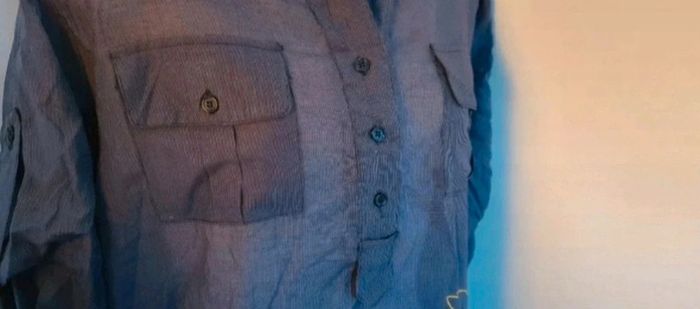 Tunique noir rayé avec fleurs sur le côté. Légère transparence , plus longue derrière que devant . Avec rabat aux manches . Taille M #A2life_taille38