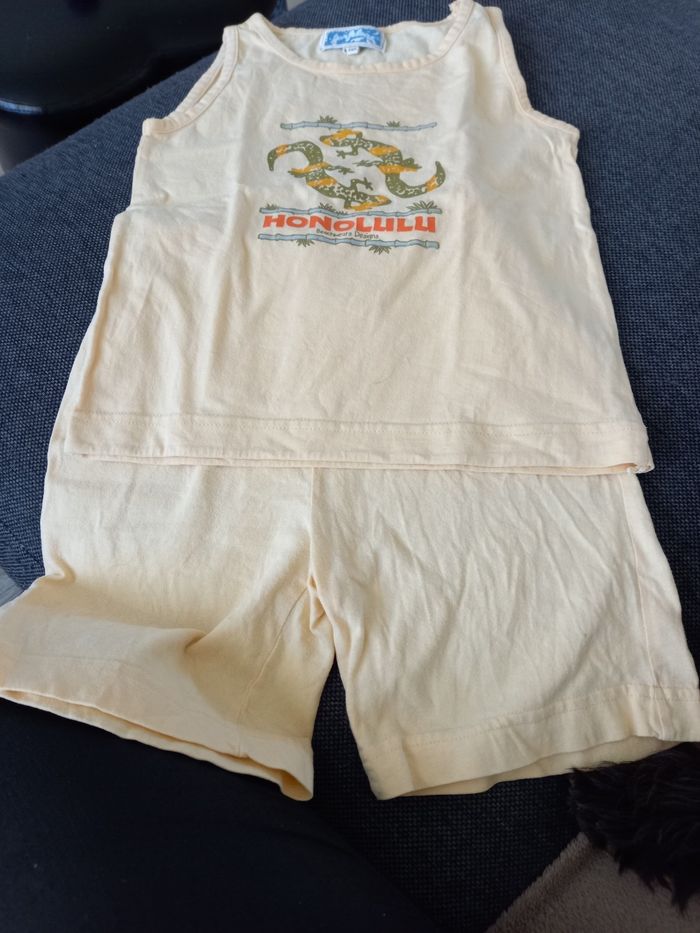 Pyjama 2 pièces garçon : short + débardeur avec motifs lézard.