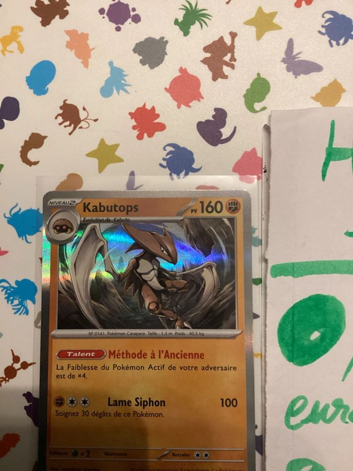 Vend ma carte Pokémon kabutops holographique 141/165 EV3.5 collection 151 FR neuf sortie de booster Là où les remises des prix des cartes sera faite dès la création du lot Cordialement ☺️