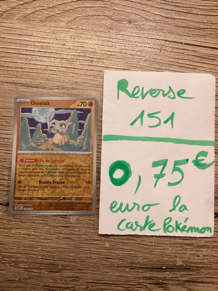 Vend ma carte Pokémon osselait reverse 104/165 EV3.5 collection 151 FR neuf sortie de booster Là où les remises des prix des cartes sera faite dès la création du lot Cordialement ☺️