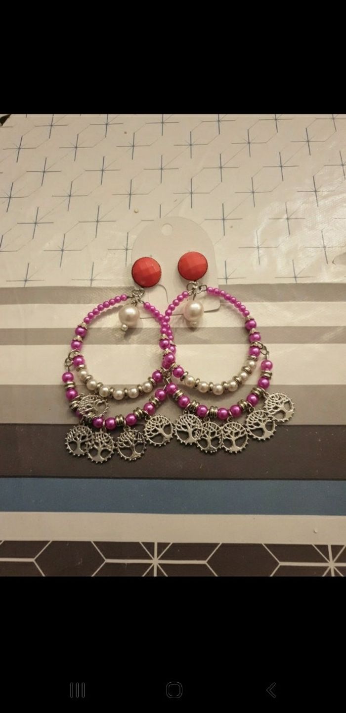Boucle d oreille fantaisie jamais portée arbre de vie fushia