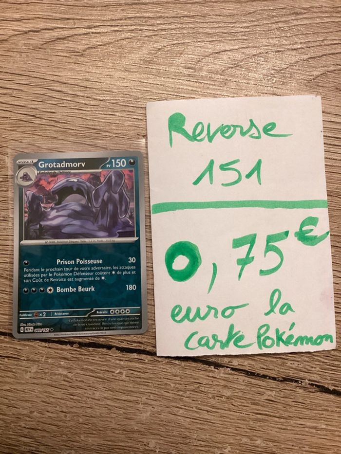 Vend ma carte Pokémon grotadmorv reverse 089/165 EV3.5 collection 151 FR neuf sortie de booster Là où les remises des prix des cartes sera faite dès la création du lot Cordialement ☺️