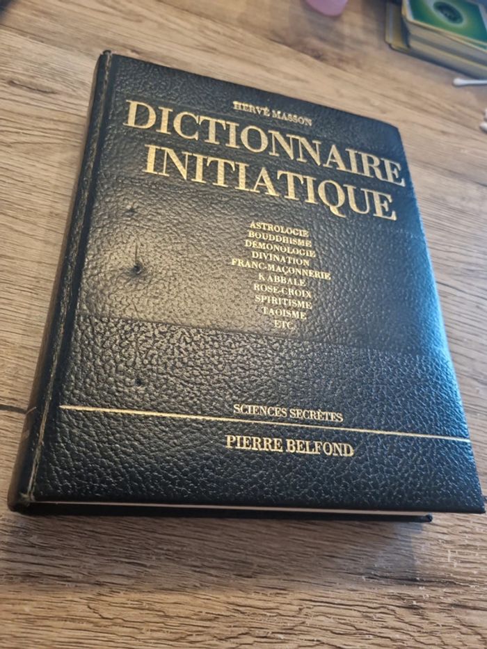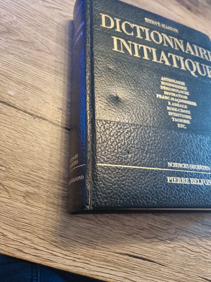 Dictionnaire initiatique hervé masson Pierre Belfond Paris 1975 sciences secrètes 1 volume in-8° relié plein simili cuir, titre doré, 367 p. - Illustrations, rousseurs sur la tranche sinon très bon état. ‎