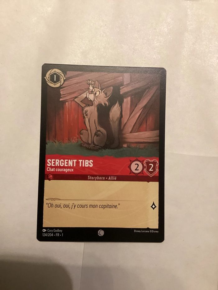 Vend ma carte disney ravensburger lorcana FR sergent tibs allié 124/204.FR.1 Non foil première édition