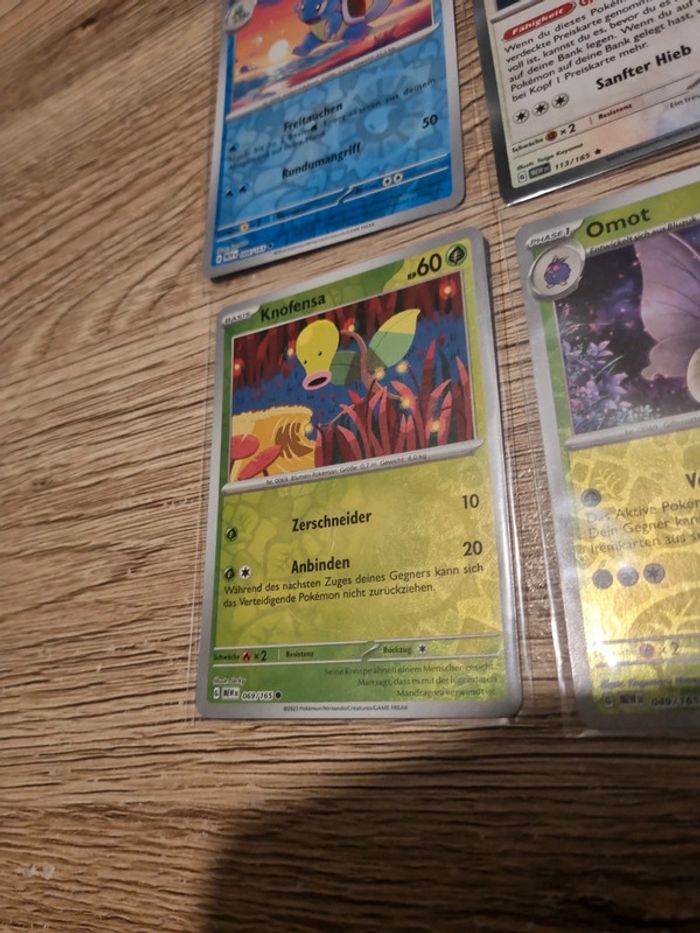Vend mon lot de 6 cartes pokémon reverse collection 151 allemand le prix et pour tout les cartes
