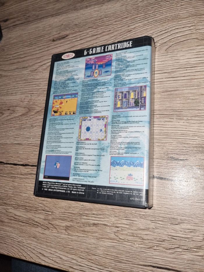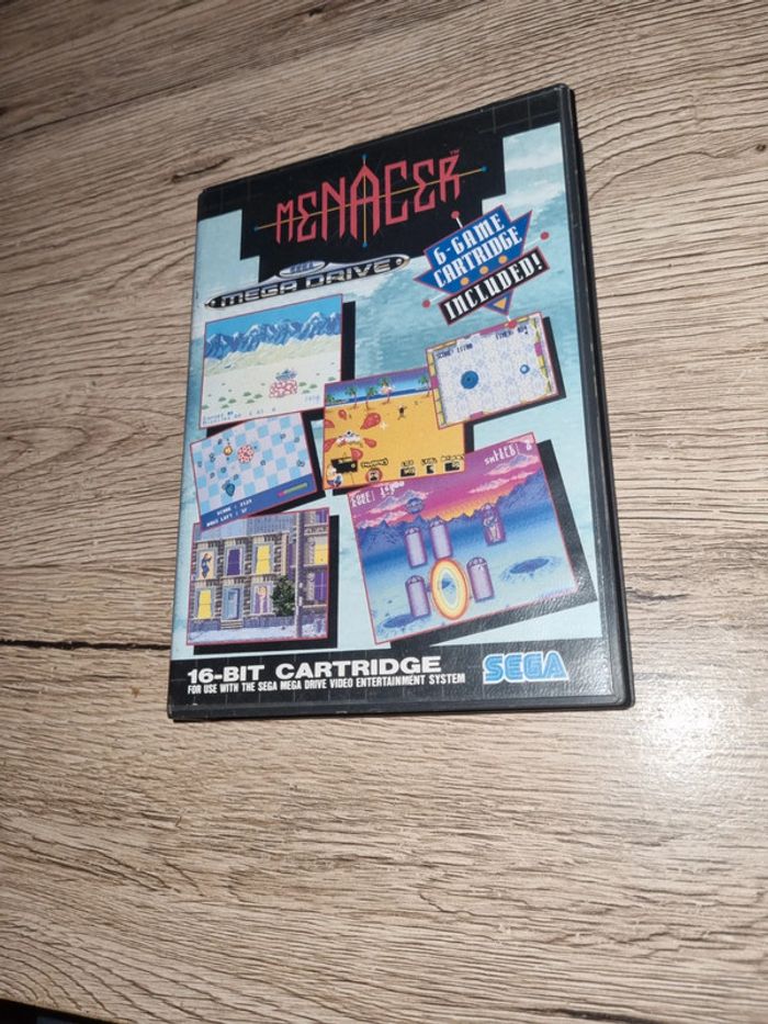 Vend mon jeu menacer 6-game cartridge sega mega drive Complet plastique pour notice du haut cassé comme le montre la dernière photo