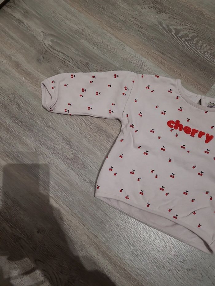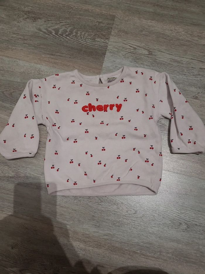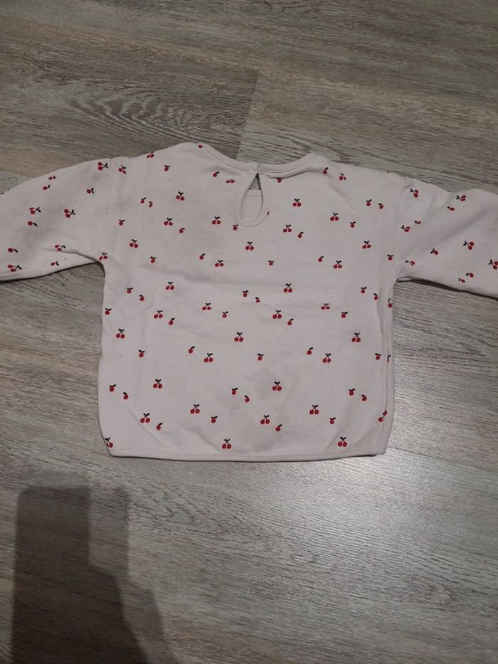 Sweat blanc kiabi avec des cerises rouges Taille 18 mois