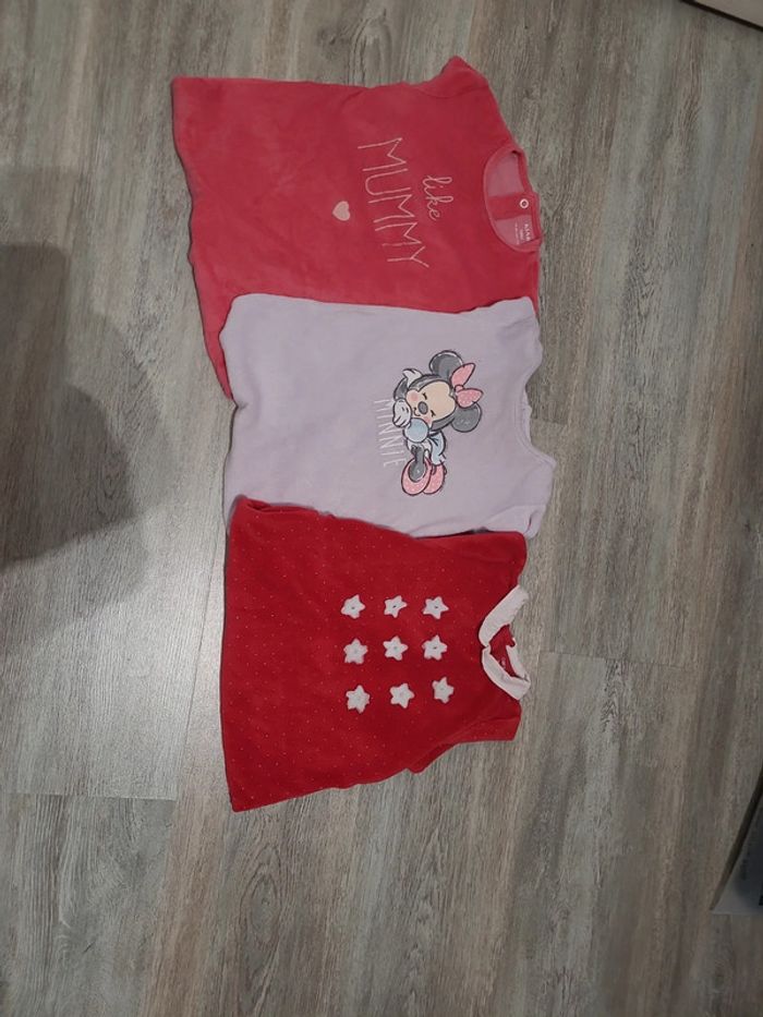Lot comprenant 1 pyjama rouge Obaibi, 1 mauve Disney baby et 1 rose Kiabi Taille 18 mois