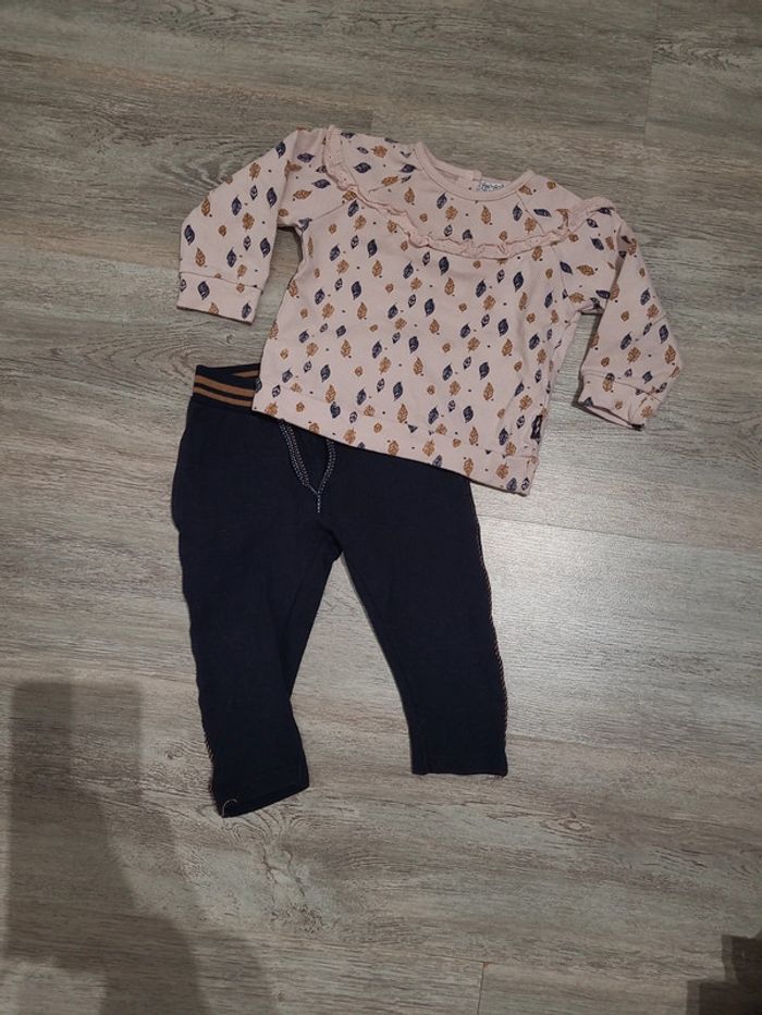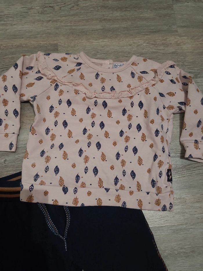 Ensemble DIRKJE avec 1 sweat rose à plumes et 1 pantalon taille élastique bleu marine Taille 18 mois
