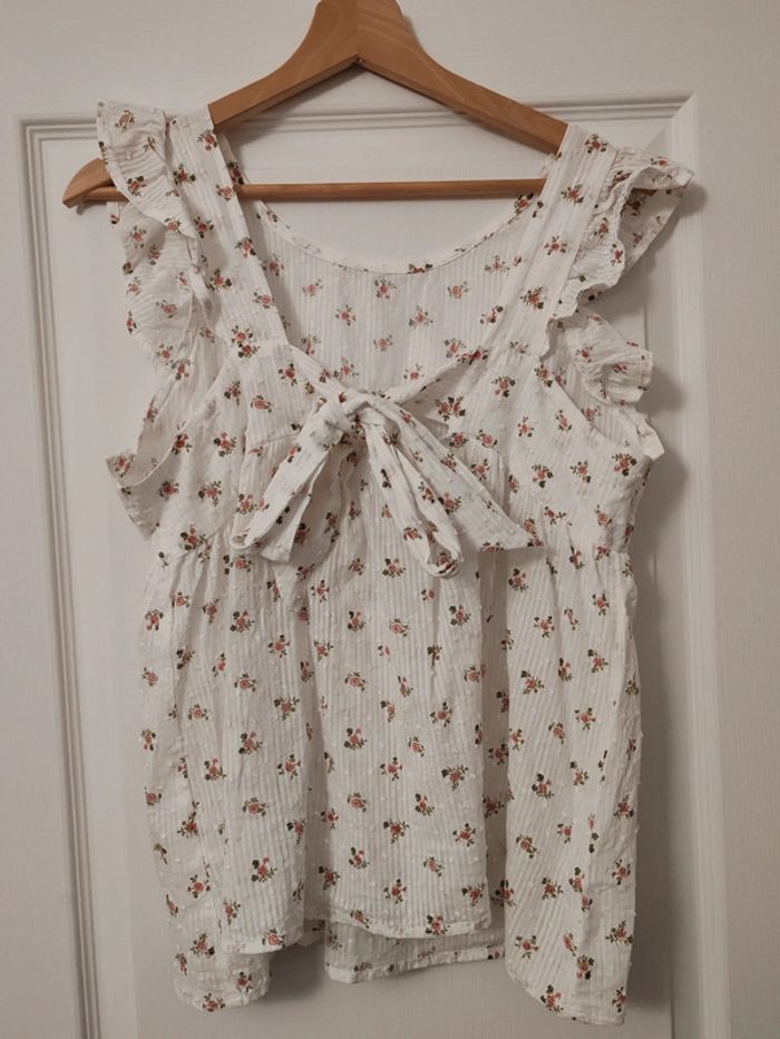 Blouse débardeur, manches évasées Blanche avec fleurs Noeud au dos