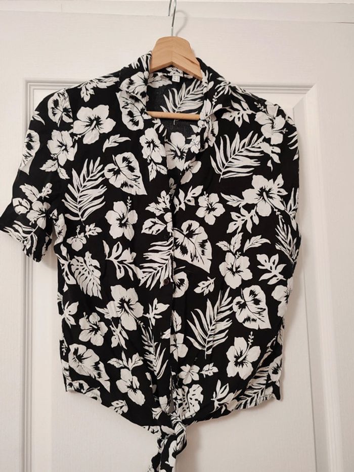 Chemisette fleurie noir et blanc S'attache en bas avec un noeud Porté 1 seule fois