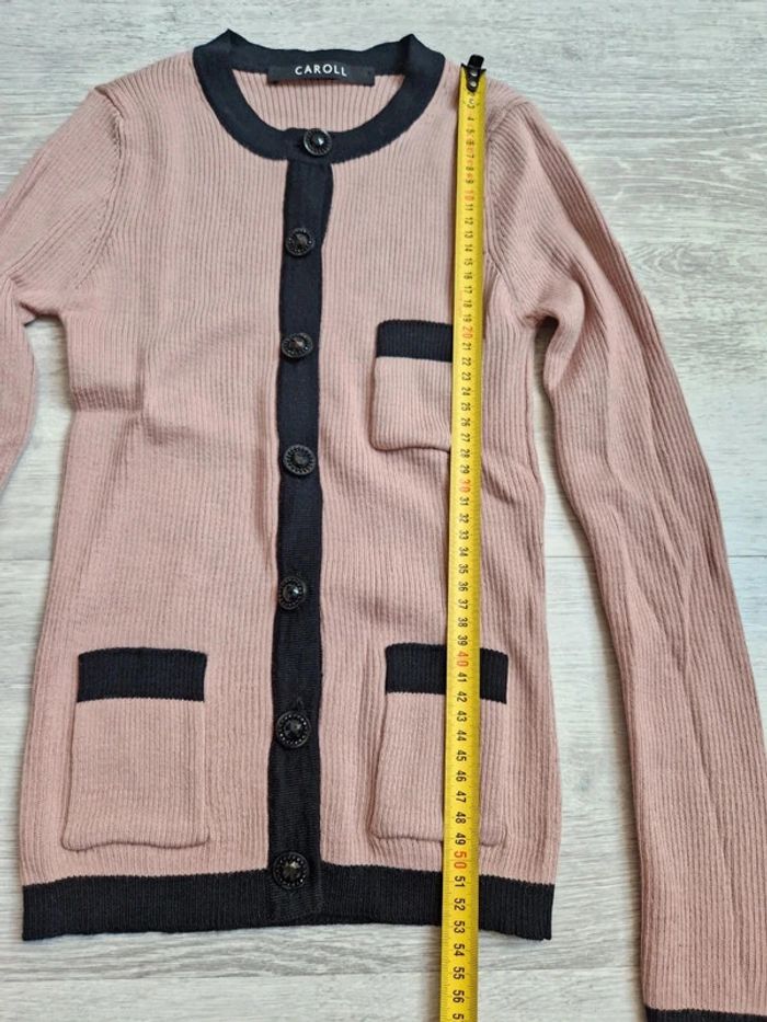 Très joli gilet neuf Caroll 34 noir et rose contenant 50% de laine Mérinos - photo numéro 3
