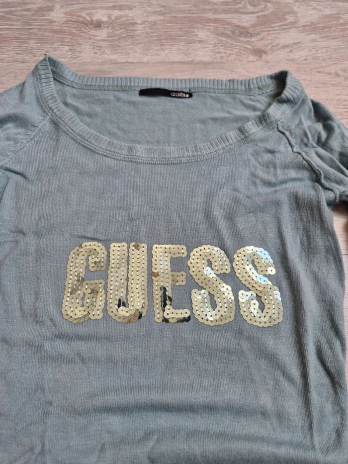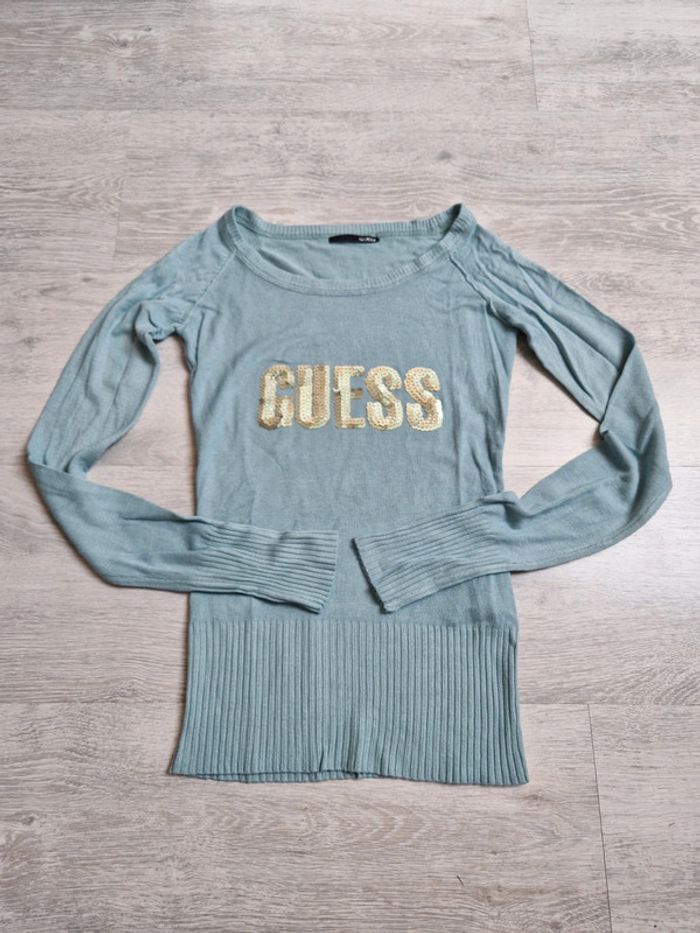 Pull léger neuf Guess XS turquoise avec sequins - photo numéro 1