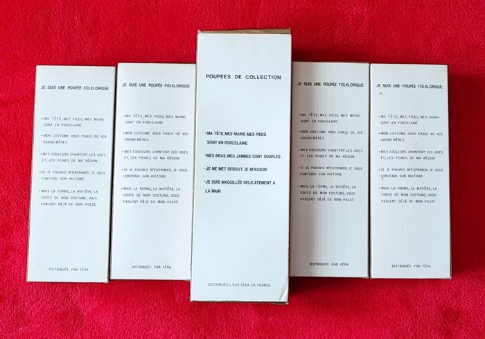 🔸4 poupées en porcelaines "je suis une poupée folklorique" 🎗 Hauteur : 20 cm 🔸1 poupée en porcelaine 🎗️ Hauteur : 26 cm ❌ Neuves dans leur boite d'origine 🚭 Maison non fumeur 🚭 🚨 Mes articles sont sur plusieurs sites, donc possible qu'un article qui vous intéresse trouve preneur sur une autre plateforme donc ne tenez pas compte du nombre de personne qui l'ajoute dans ses favoris 💟 si vous avez un coup de 💗 ne tardez pas 👛 💫 Envoi rapide (📮 dépôt sous 24/48h) et soigné 🎁 🤝 Remise en main propre possible sur SOISSONS et VILLERS COTTERETS 📲 Achat possible via une autre plateforme ✔ Abonnez-vous à mon dressing 💗 des mises en lignes sont faite régulièrement Bon shopping 🛍