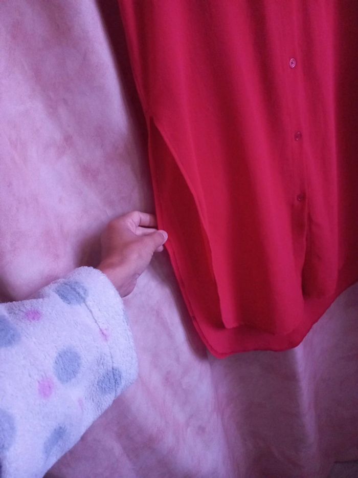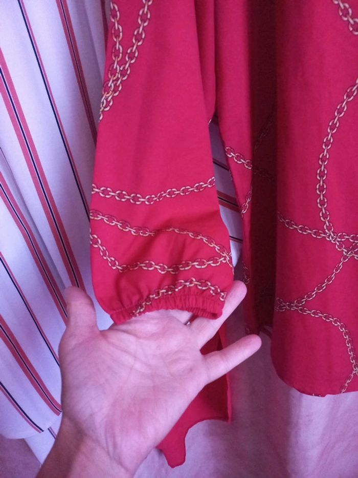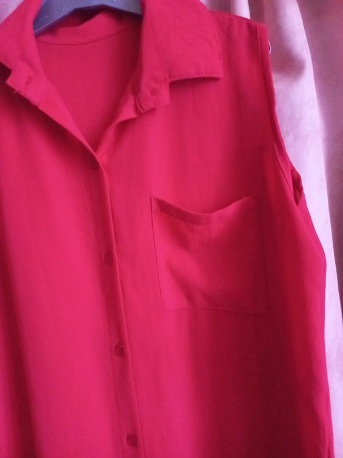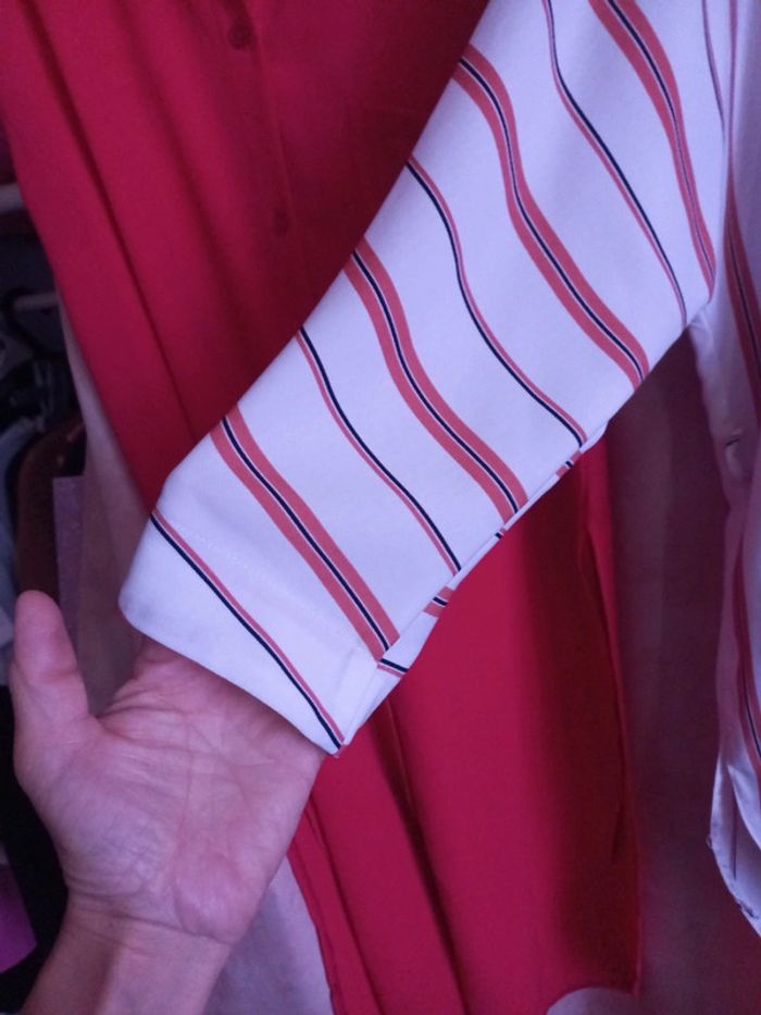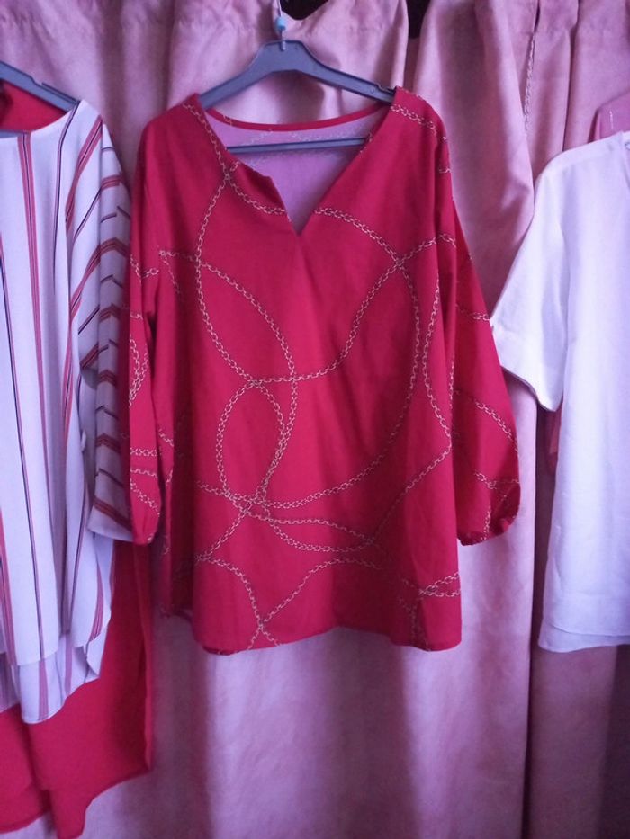 1 t-shirt blouse rose clair avec liseré argenté 1 tshirt blanc fluide primark 1 tshirt long (tunique) manche 3/4 rouge avec chaînette 1 tshirt long (tunique) manche 3/4 blanc rayé. Passant à ceinture mais je n'ai plus la ceinture. primark 1 chemise longue rouge sans manches ouverte sur les côtés. Tous sont en très bon état sauf le premier rose dont les liserés s'enlèvent. #lenkekefemme36