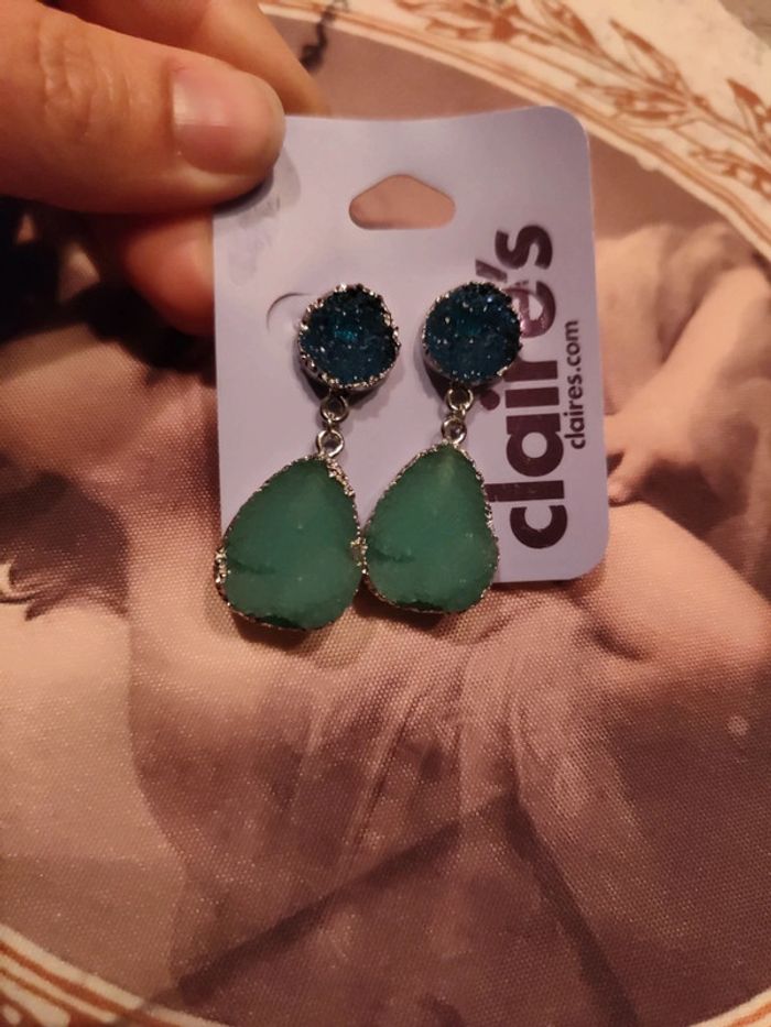 Boucles d'oreilles vertes et bleues - photo numéro 2