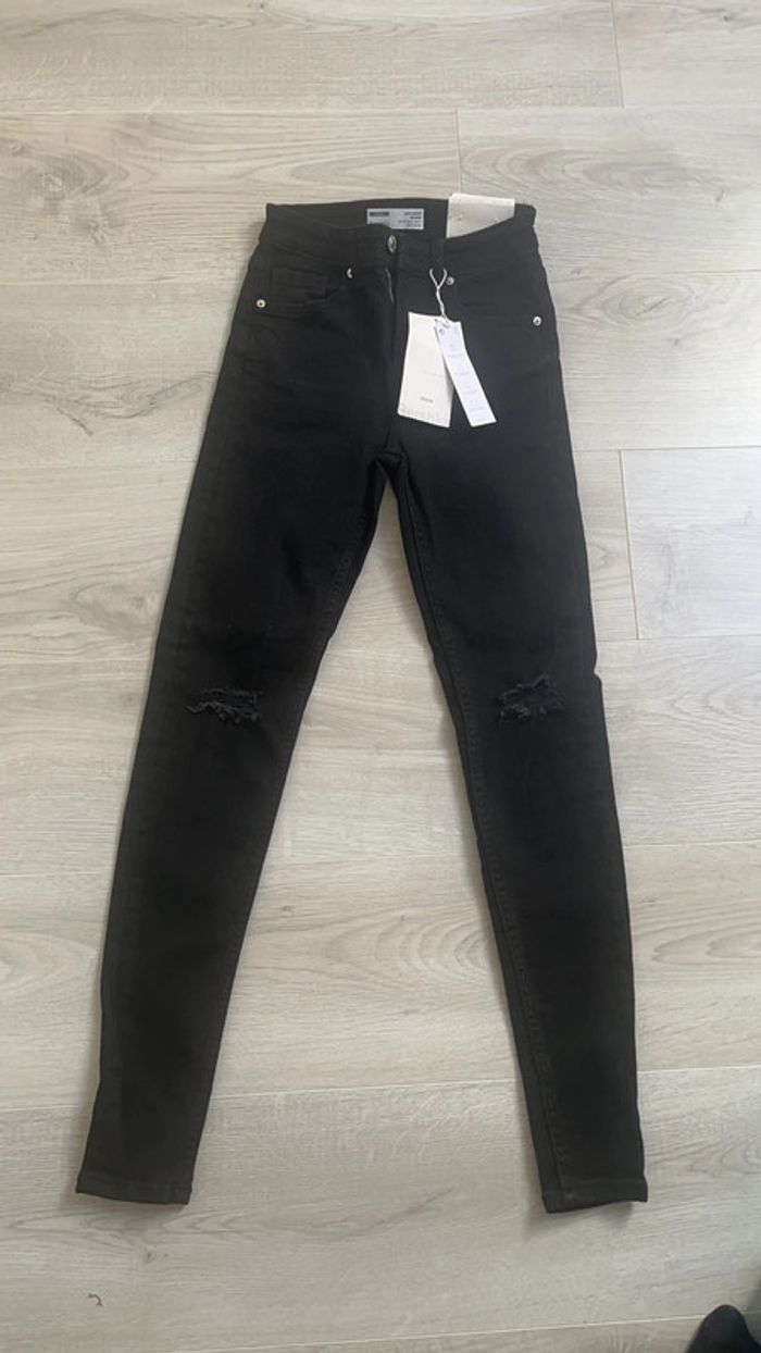 jean skinny neuf avec étiquette, taille basse, XXS/32/4, jean noir à trous, jamais porté, Bershka, jean femme