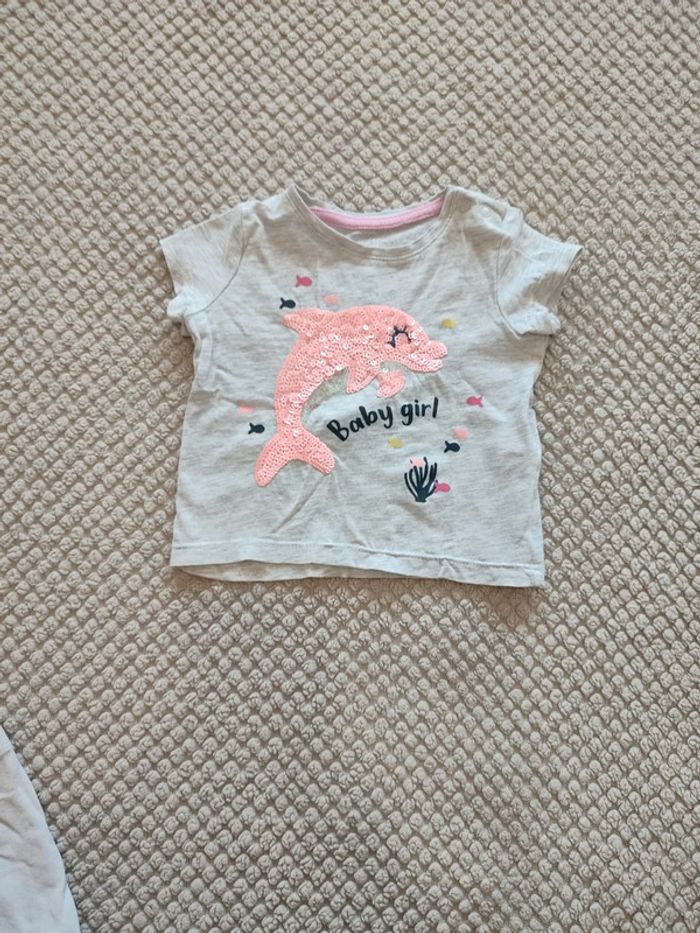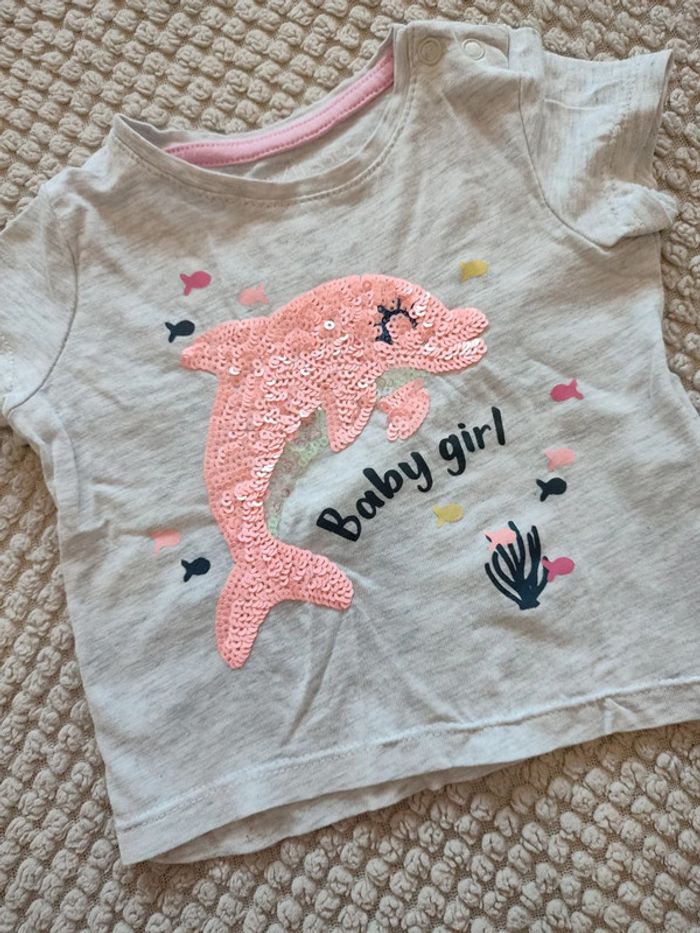 Tee shirt motif dauphin en perle Taille 68cm