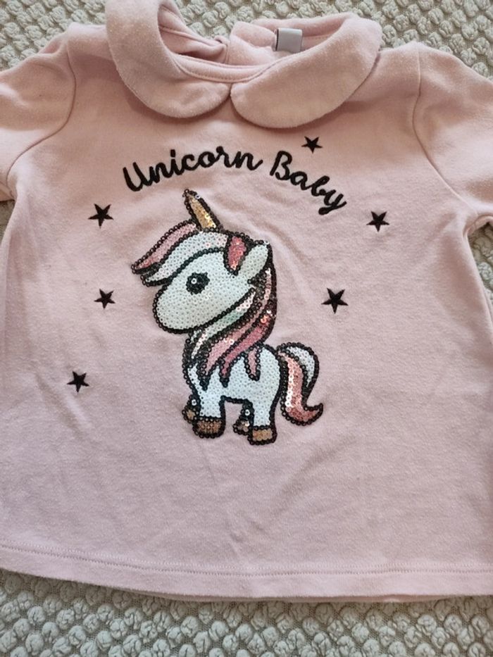 Tee shirt manches longues motif licorne perle pailleté Taille 6m