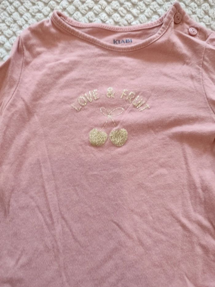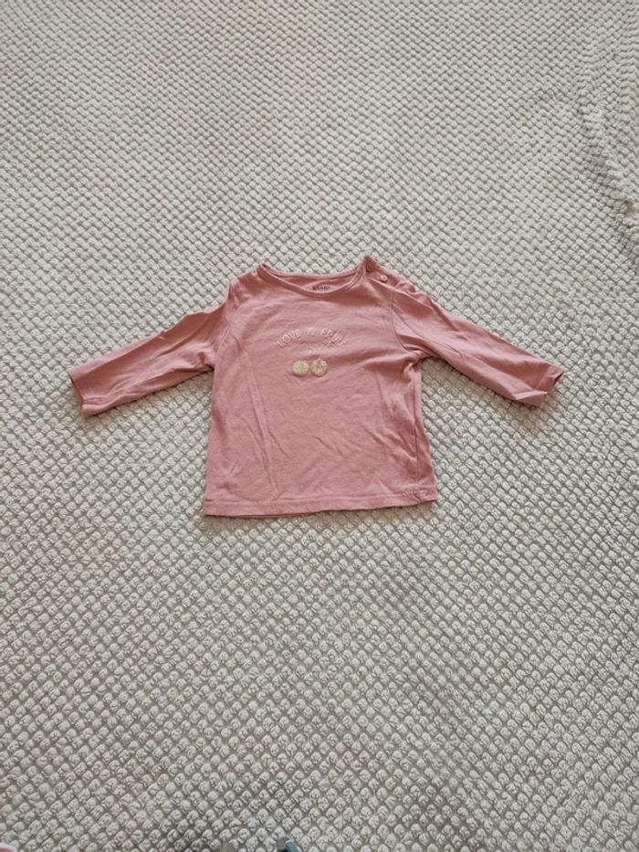 Tee shirt manches longues avec inscription doré et dessin cerise Taille 6m