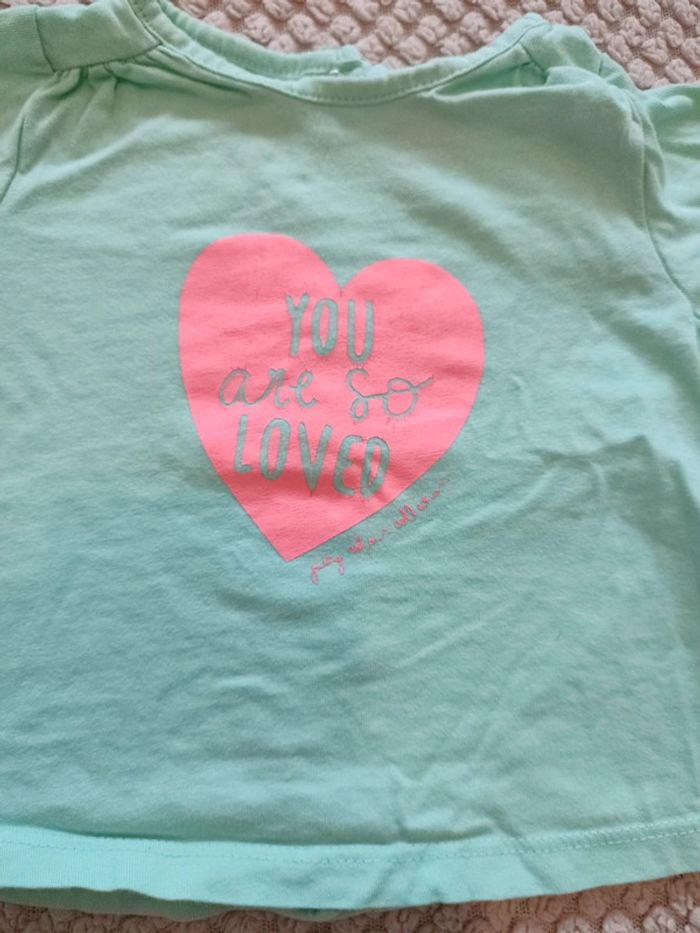 Tee shirt manches longues avec dessin coeur et inscriptions (légèrement craquelé) Taille 6m