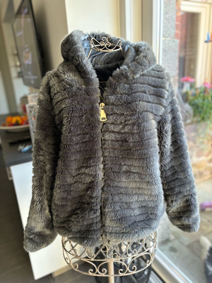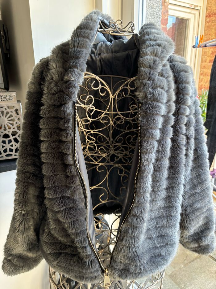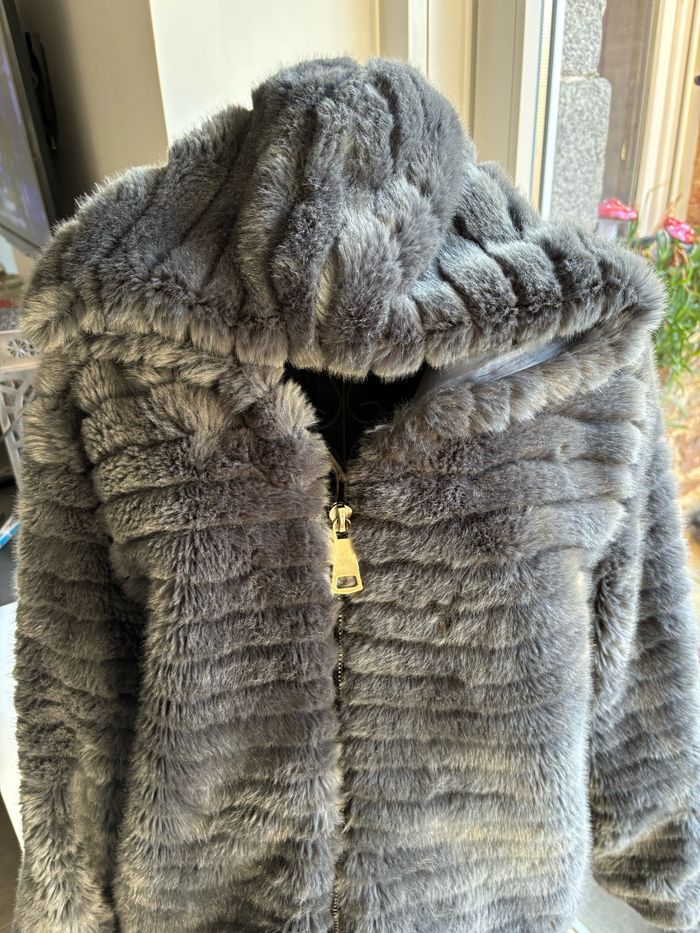 Joli veste fausse fourrure Avec capuche très bon état Taille L