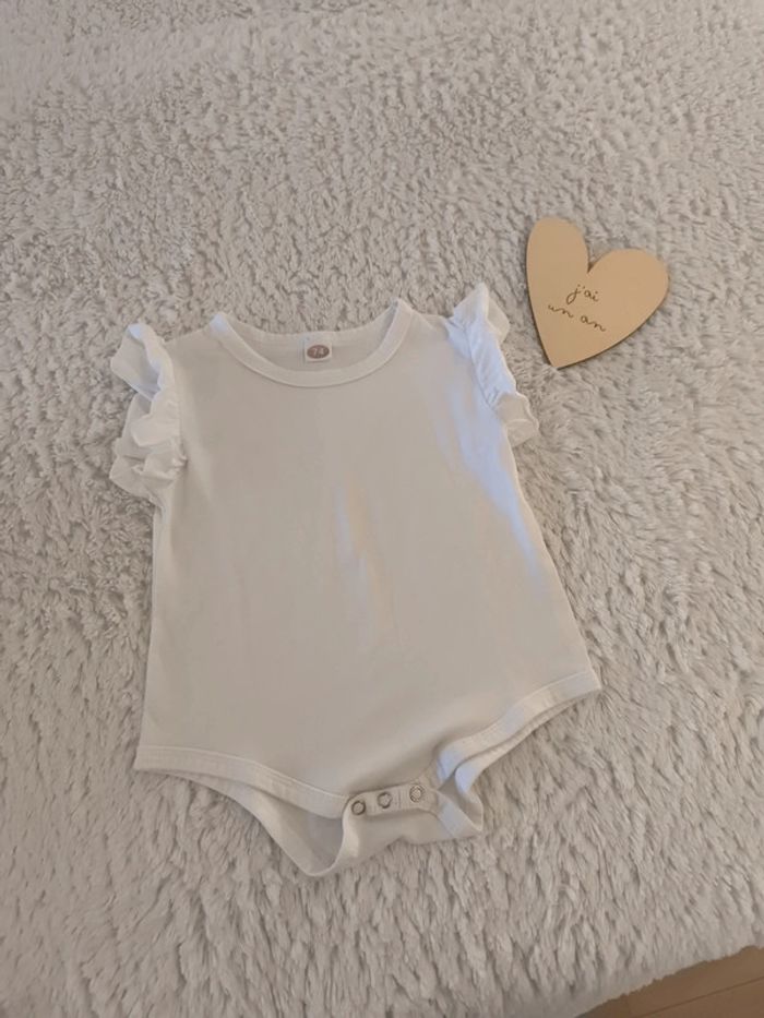 Body blanc avec épaules froufrou. Taille 12 mois Parfait état