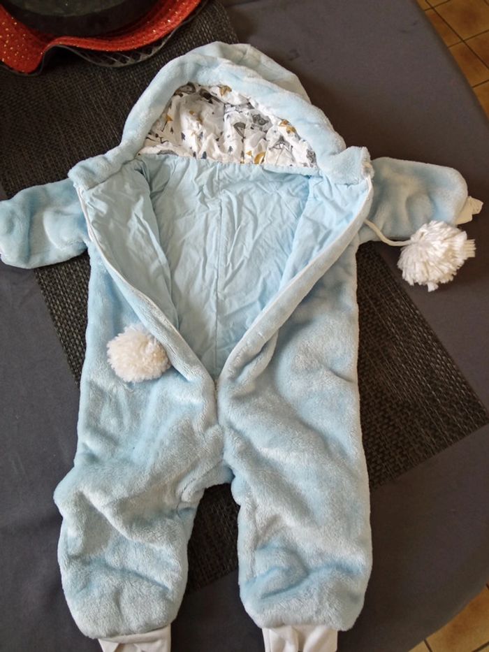 Combinaison bleu pâle avec capuche plus d étiquette taille mais convient a un 3 mois #3moisgdomi045