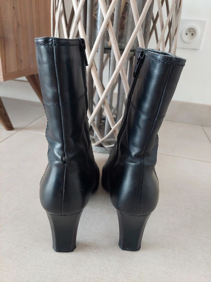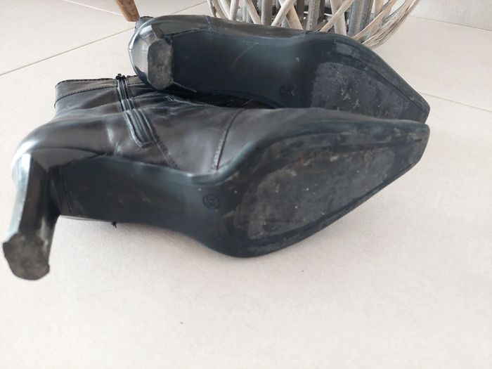 📖 Bottines à talons, fermeture éclair. La bottine gauche a un petit défaut à l'arrière (voir photo). 📏 Pointure 38 🛍 D'autres articles dans mon dressing avec #38aurelilou34 et #femmeaurelilou34 📉💰 Réductions activées sur les lots