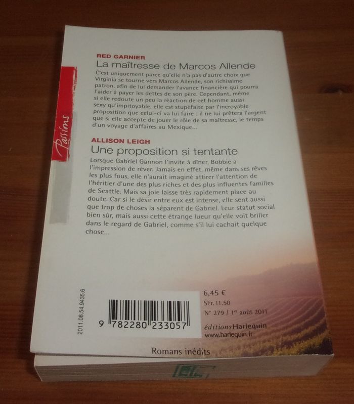 a vendre roman de la collection Passions aux éditions harlequin livre en bon état général , petit format Tampon sur tranche (voir photo) le titre en vente est : 279 La maîtresse de Marcos Allende (red Garnier) Une proposition si tentante (Allison Leigh) 1 euro le livre