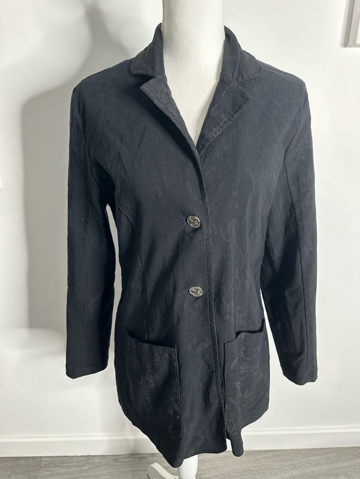 Veste blazer - Excellent état - Taille 42 équivalent XL - Noire et argentée - Vintage, années 90’ - Lulu Bellule - Fabrication française 🇫🇷 - Se ferme avec des boutons - Deux poches - Reflets pailletés argentés - Polyester, viscose et Lycra Dimensions: - 45cm niveau épaules - 47cm niveau aisselles - 72cm de long
