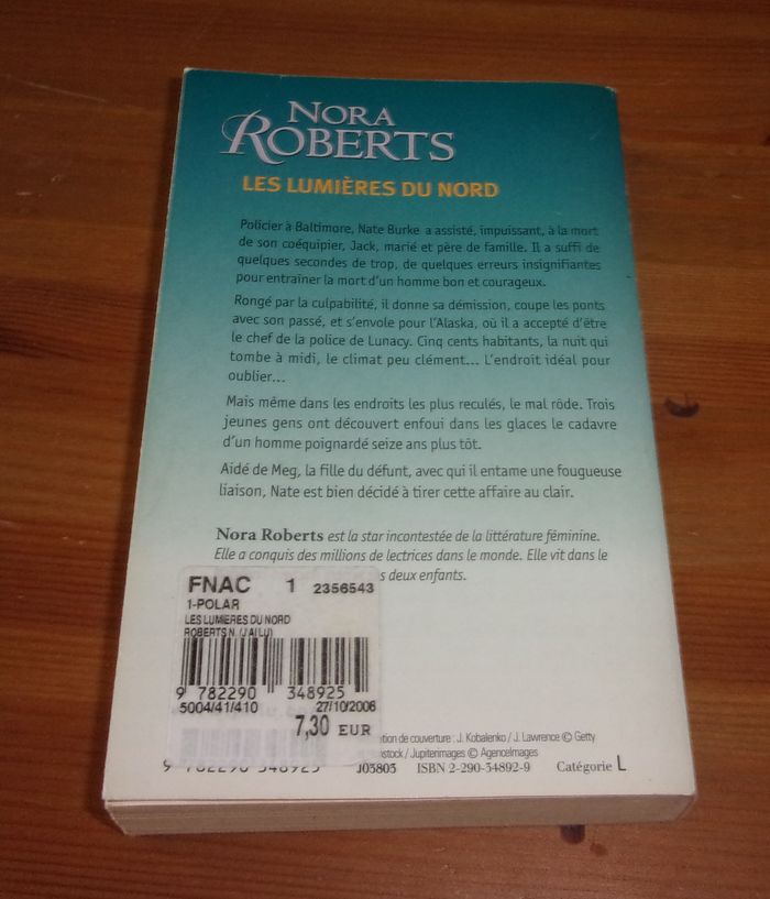 a vendre livre par nora roberts aux éditions j'ai lu dans la collection grands romans 8162 le titre est : les lumières du nord livre en bon état général 1 euro le livre