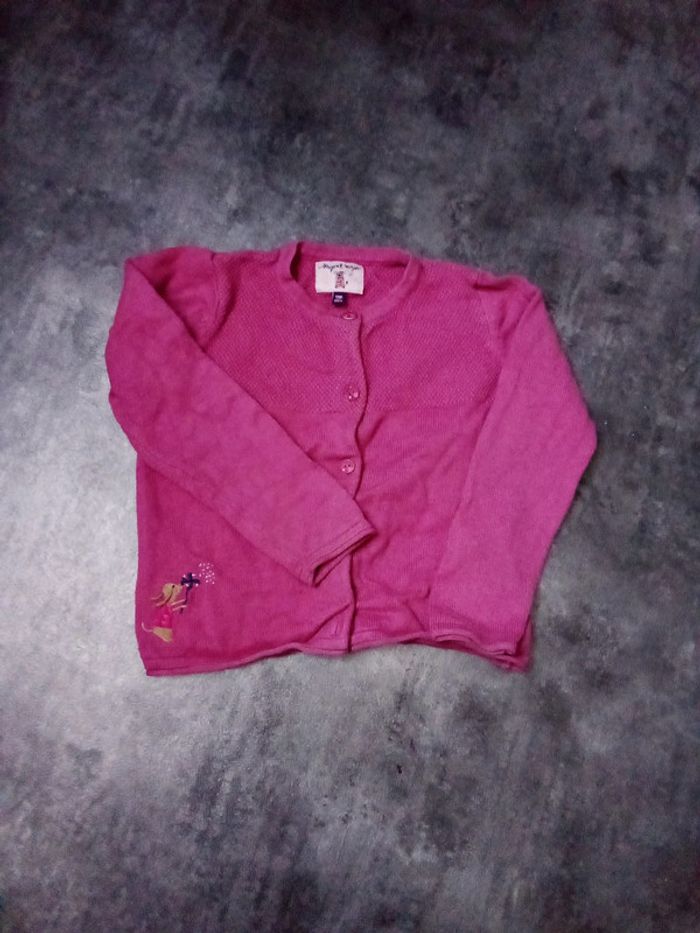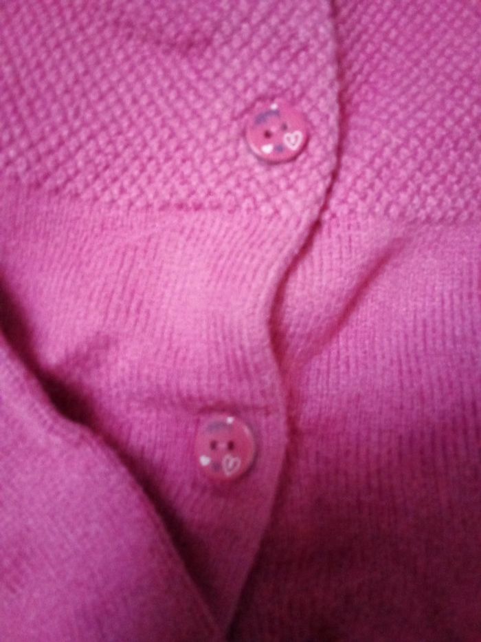 Gilet rose Jolis détails sur les boutons et le bas du gilet Taille 4 ans Il manque un bouton, stylo sur l'étiquette et étiquette coupée Les défauts sont en photos et en description donc pas de retour accepté
