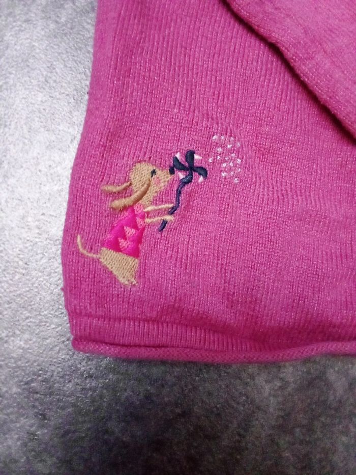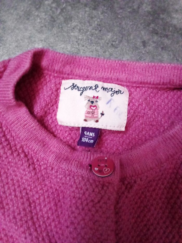 Gilet rose Jolis détails sur les boutons et le bas du gilet Taille 4 ans Il manque un bouton, stylo sur l'étiquette et étiquette coupée Les défauts sont en photos et en description donc pas de retour accepté