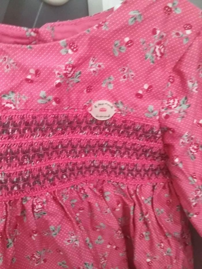 Très belle robe sergent major Rose avec roses et champignons Les boutons dans le dos sont en forme de roses Très bon état Taille 12 mois