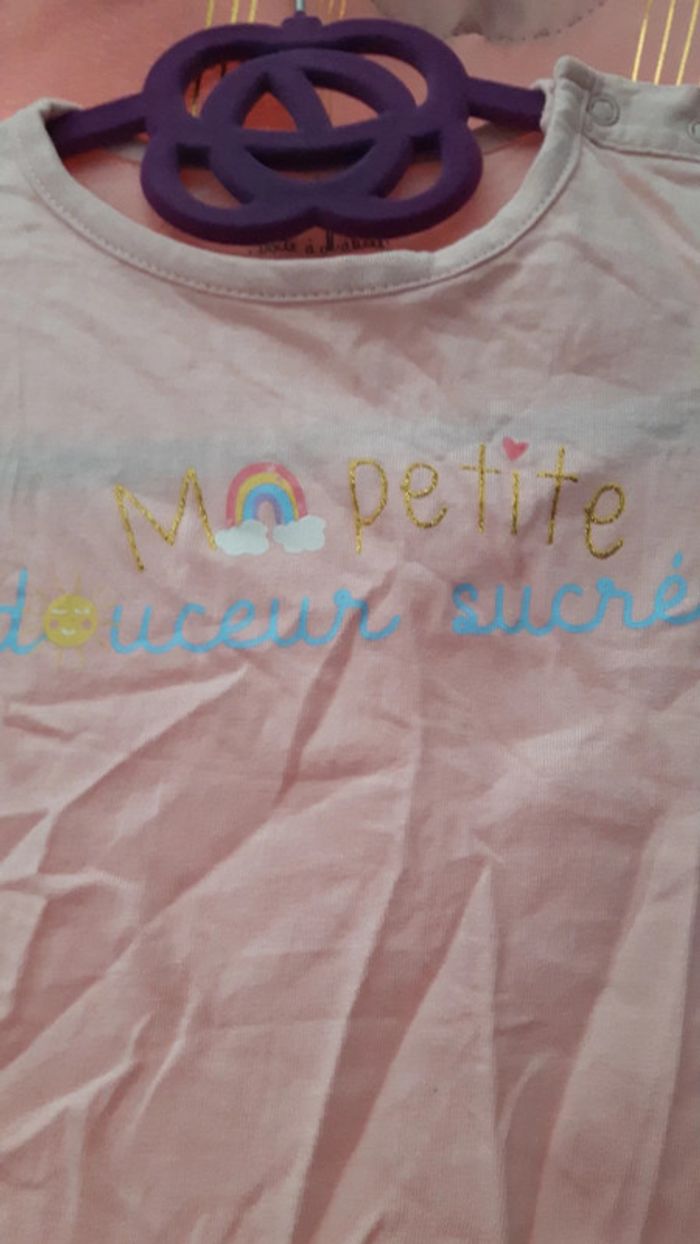 T-shirt rose poudré Arc en ciel Très bon état Taille 24 mois