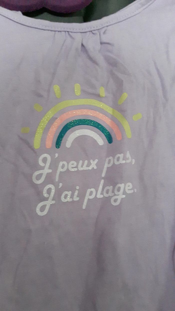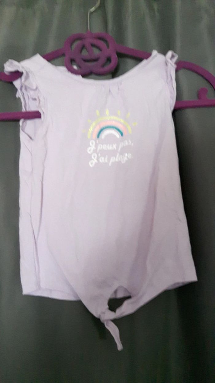 T-shirt mauve Motif arc en ciel Noué au niveau de la taille Neuf Taille 24 mois