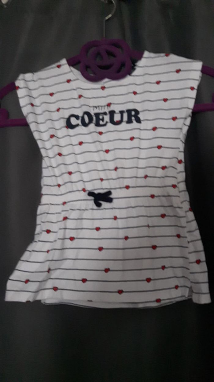 Robe façon marinière Motifs coeurs Inscription "mini coeur" Noeud au niveau de la taille Très bon état Taille 12 mois