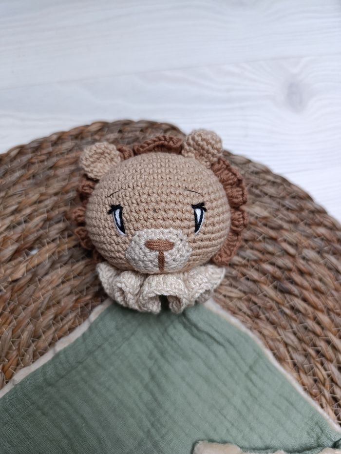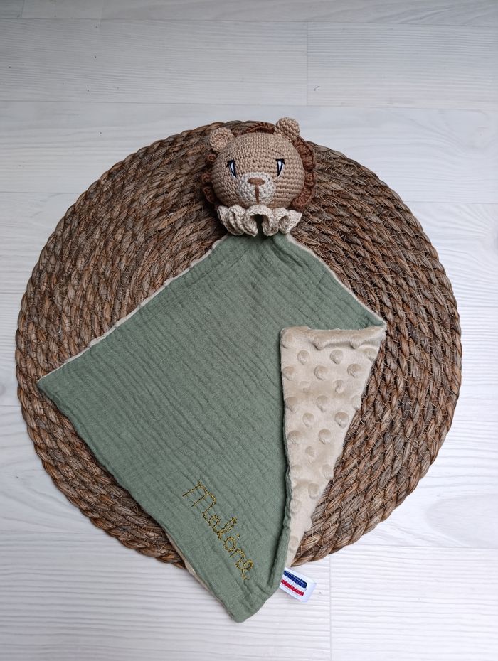 Doudou lange fait main Tête faite au crochet en coton et ouate de rembourrage hypoallergénique Le bas est fait en double gaze et minky Dimension du bas 25x25 cm environ Doudou 34,90€ Broderie 5€ Flocage 3€ D'autres modèles et coloris disponibles