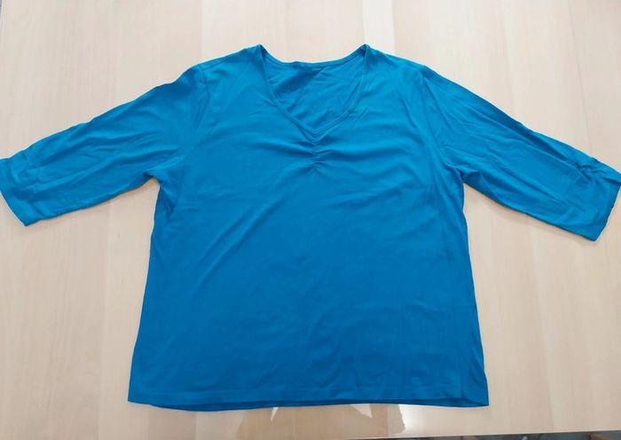 Tee-shirts bleu manche 3/4. Taille 4 col v