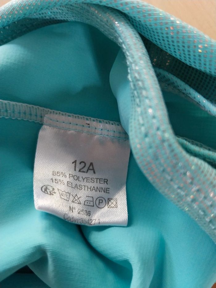 Maillot bain 1 pièce bleu turquoise paillettes. Taille 12 ans