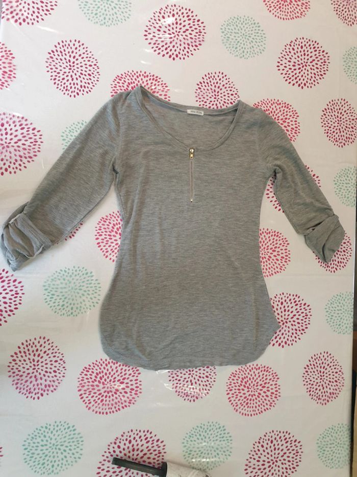 Tee-shirts gris manche 3/4. Taille s . Très bon état.