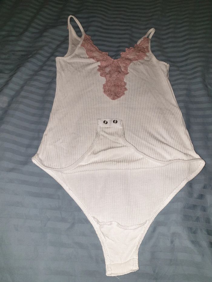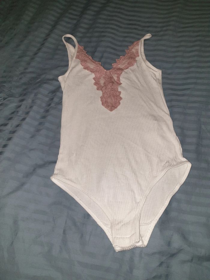 Jolie bodie écru et dentelle rose. Marque Jennyfer Juste lavé jamais porté. Taille xs.