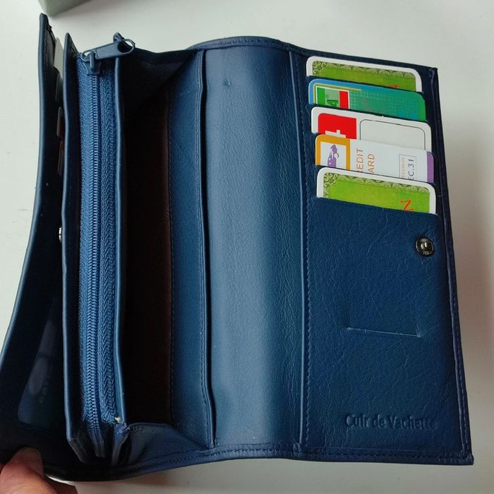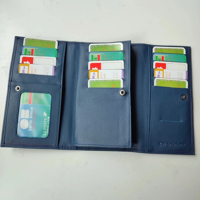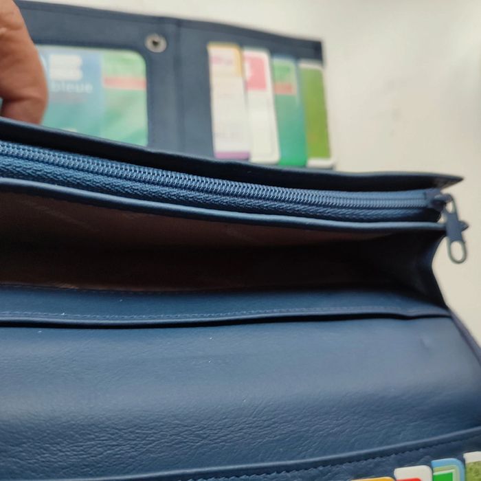 Portefeuille neuf en cuir bleu marine, Éléphant d'or - photo numéro 9